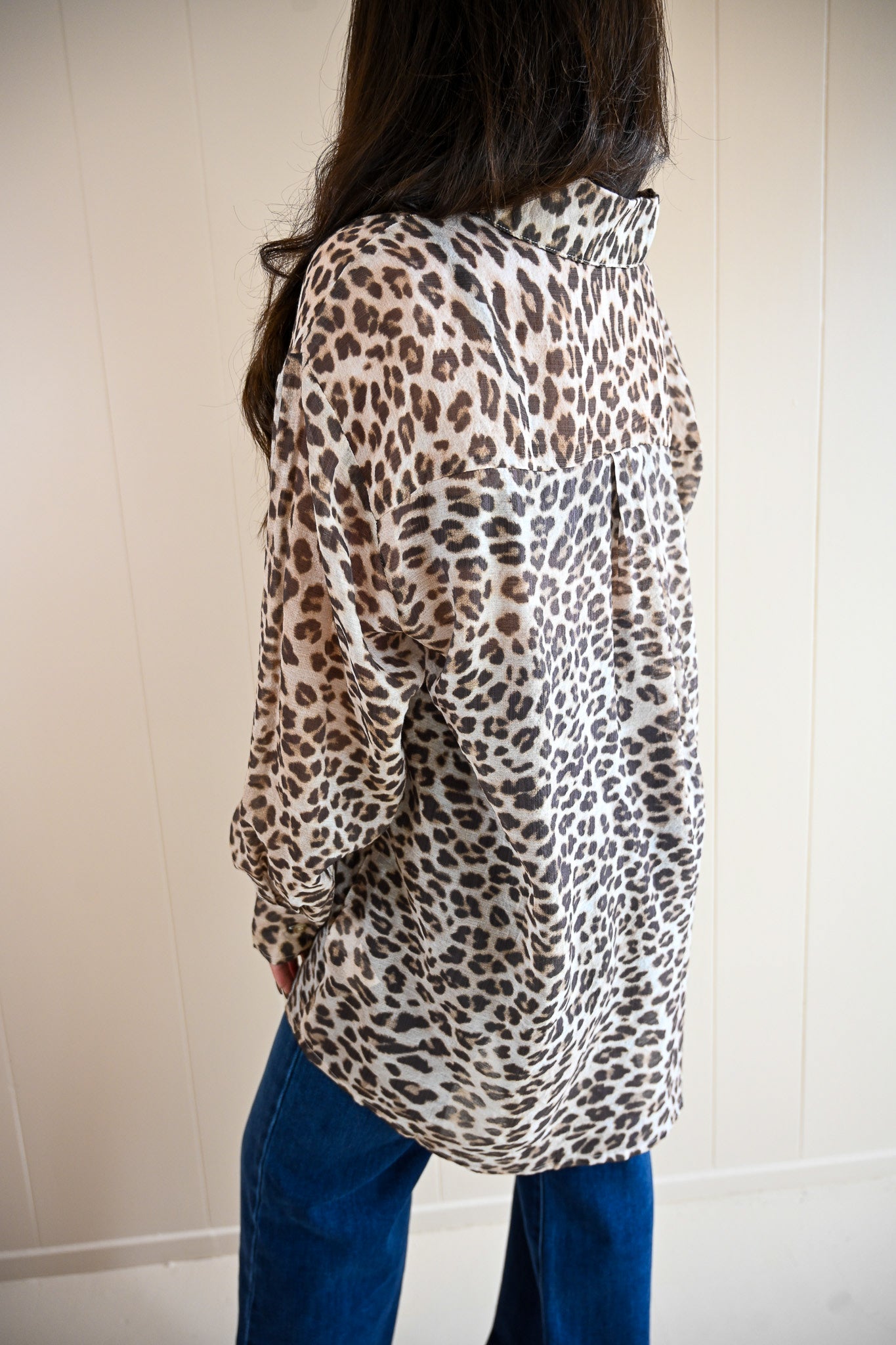 This 100% cotton leopard-print button-up tunic has a slightly sheer finish and an intentionally oversized fit, making it perfect as a layering piece. Wear it open like a lightweight jacket, belt it, toss it over a dress, or layer it under a sweater with leggings—it’s the kind of statement shirt that works every way you style it. The outfit possibilities are endless with this one. This style runs very oversized.