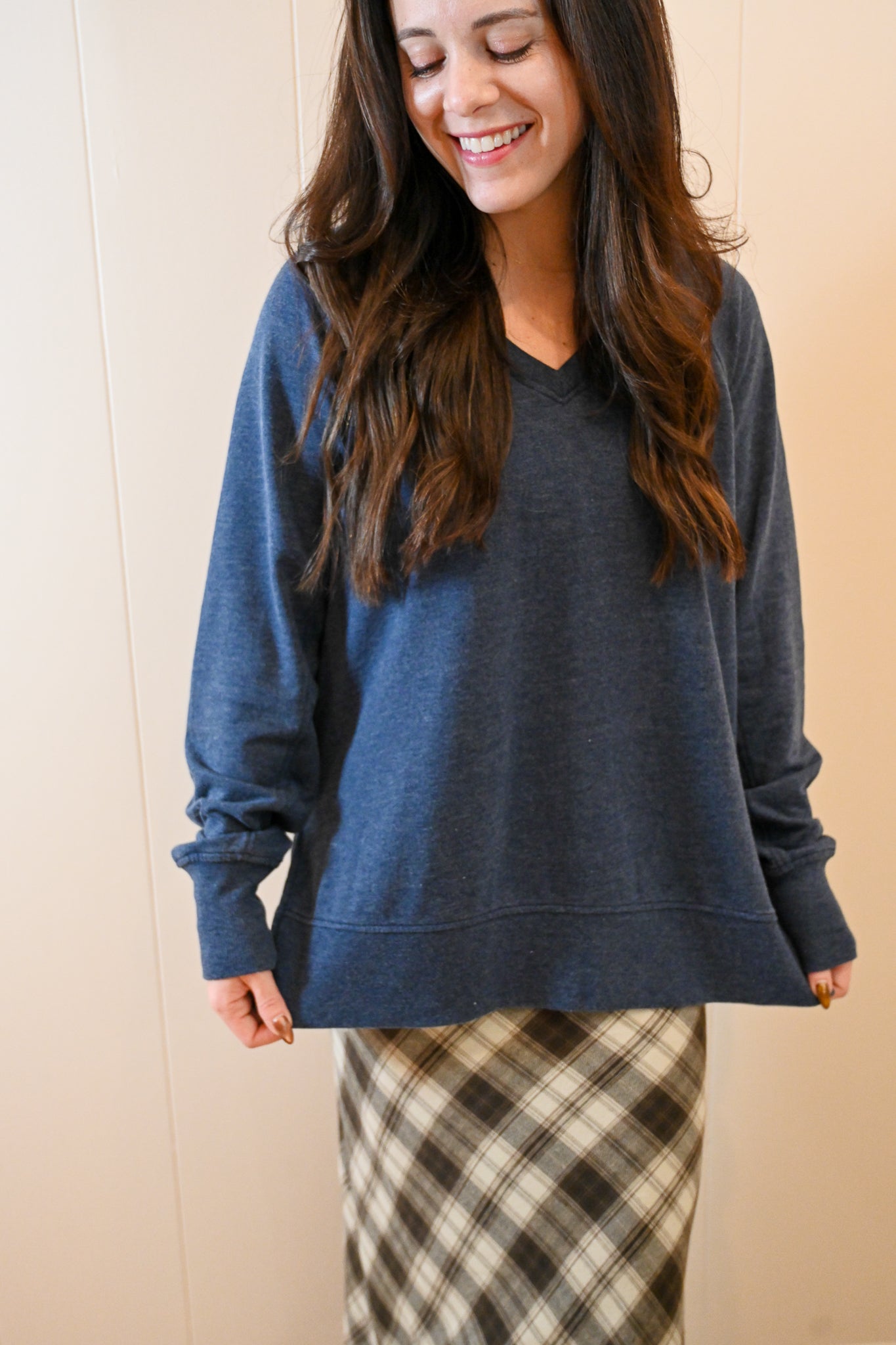 A best seller! A relaxed favorite with lived-in charm. This midweight French terry top has an oversized fit and features burnout wash for that perfectly broken-in feel that only gets better over time. Finished with side vents and a stepped hem—it’s an easy way to elevate your casual look while keeping things comfortable. Most gals go down in size as it is oversized in fit.