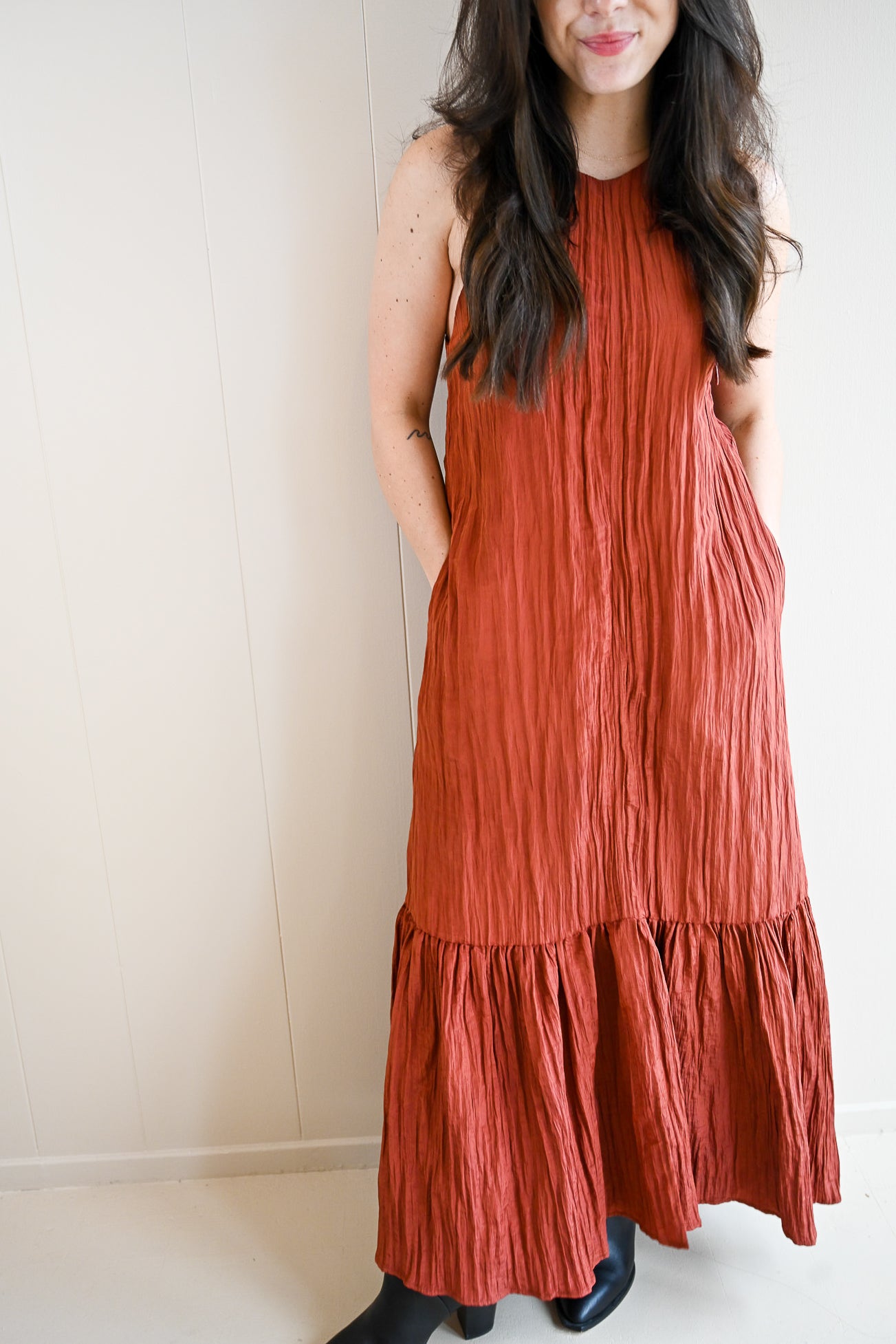 This dreamy dress is made from a soft, crinkled fabric that moves with you and adds just the right amount of texture. The open back and delicate cross-back spaghetti straps (that adjust) bring a flirty edge, making it your go-to for warm nights, weekend getaways, and everything in between. This is THE seasonless & transitional dress! This style runs true to size.